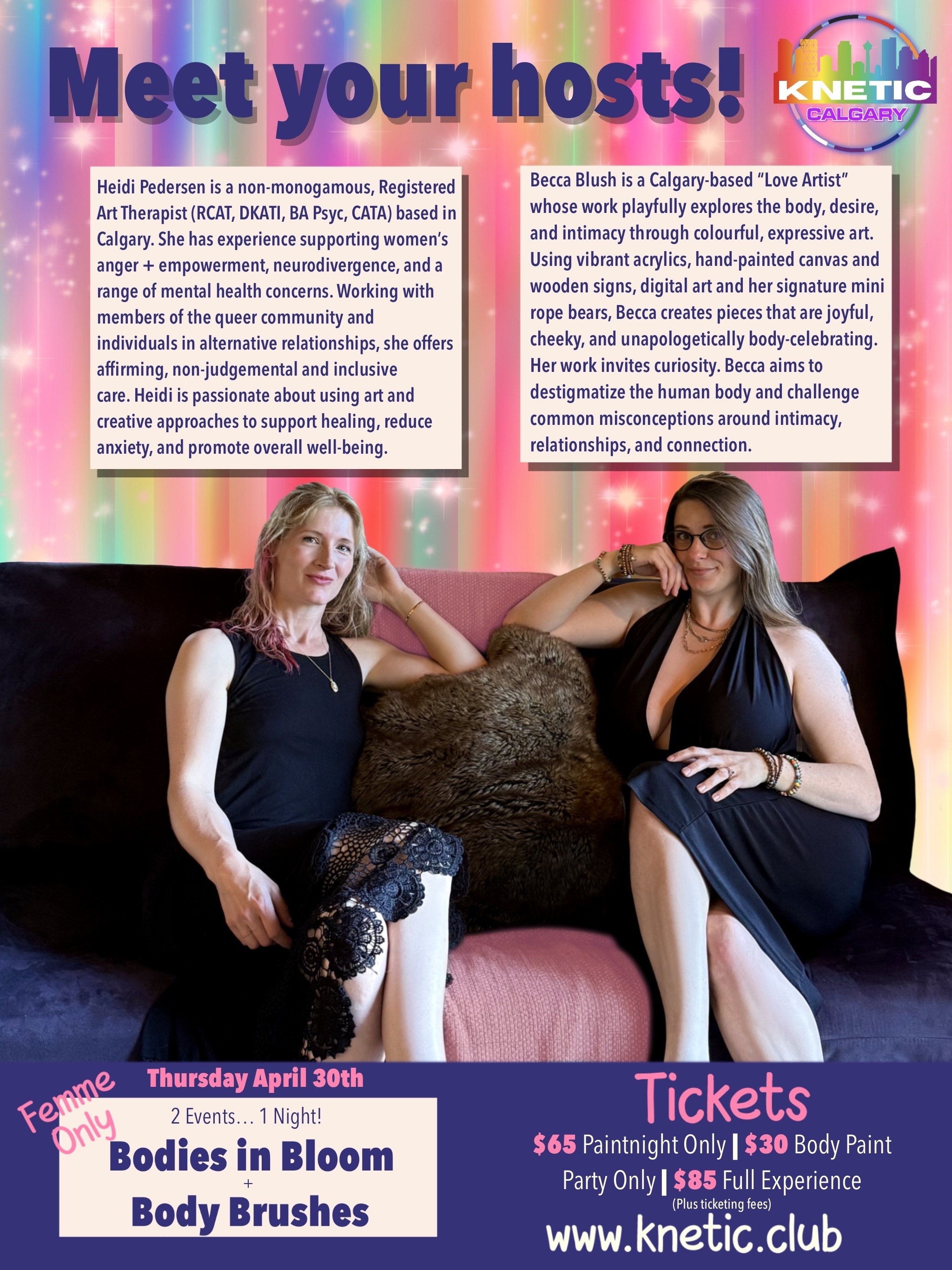 Whether you arrive with a partner, friends, your polycule, or on your own to make new connections… you’ll be welcomed into a space designed for curiosity and creativity.